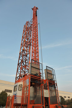 变频施工升降机最大提升高度为250m,提升速度为0~54m/min,主要关键核心部件全部采用国际或国内知名品牌,同时在多年施工升降机研制的基础上,进一步对结构进行优化,确保了整机运行更加平稳、安全、可靠。变频施工升降机相对传统施工升降机拥有软启动、安全性、效率高、节能等诸多优点,适用范围更加广泛,是未来施工升降机的发展方向。