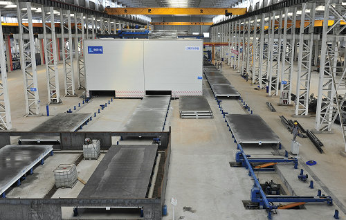 混凝土预制构件生产线采用机械化设备生产混凝土装配式住宅构件。生产线包括固定模台生产线和自动化流水线两种类型。主要生产产品包括叠合楼板、叠合剪力墙、内隔墙、外墙板、剪力墙板、三明治保温墙板、阳台、空调板、楼梯等。